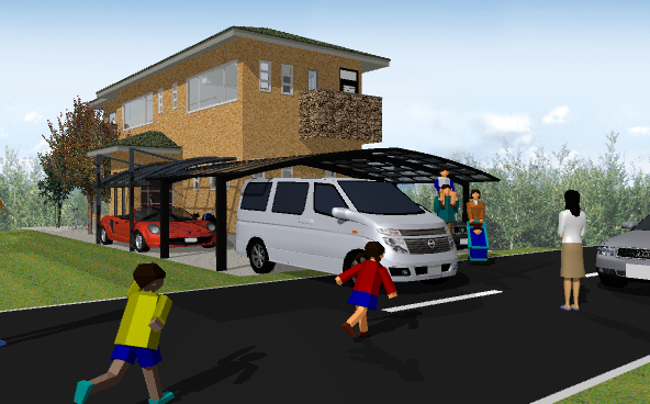 駐車場は、4台。 子供部屋と、両親が泊まりにきたときの部屋。